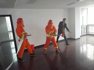 下午4點整,演習總指揮楊躍勝宣布演習正式開始。隨著火災警報鈴聲的響起,演習指揮部立即啟動公司火災應急預案,所有電梯立即緊急迫降,大樓就近安保巡邏人員持滅火器迅速開展撲救,同時公司微型消防站隊員在三分鐘內(nèi)奔赴火災現(xiàn)場增援。參加演習的部門安全員在聽到警報和廣播后立即組織本部門員工就近從消防通道迅速有序地疏散到安全地帶。