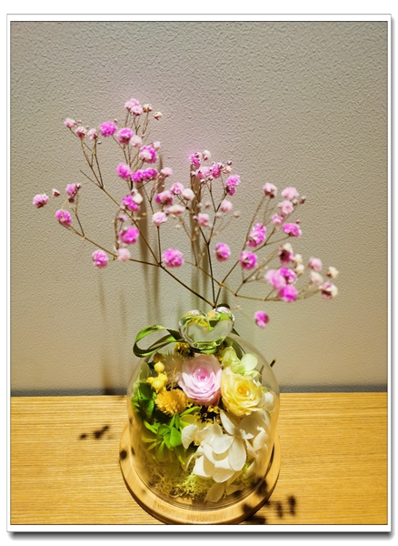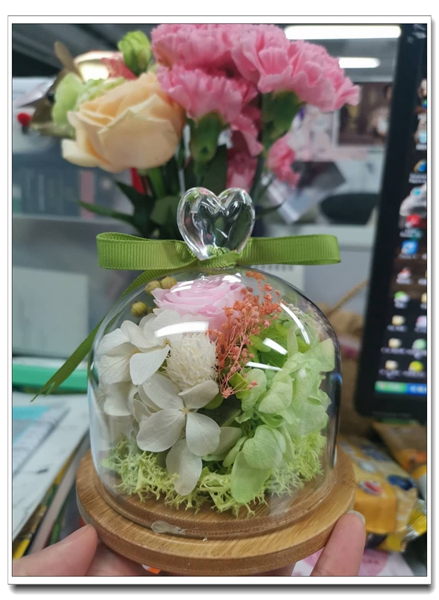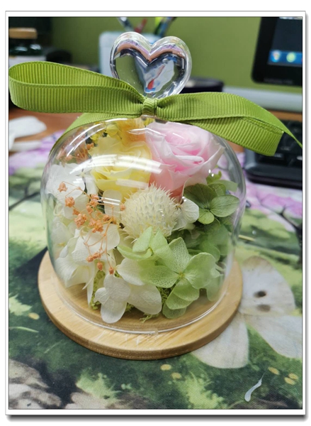 我們再來看看手工作品,永生花。希望是我們心中最為珍貴的東西,我們把春天的花朵裝進瓶子,許下我們最美好的愿望,戰勝疫情,戰勝困難,我們一起努力。